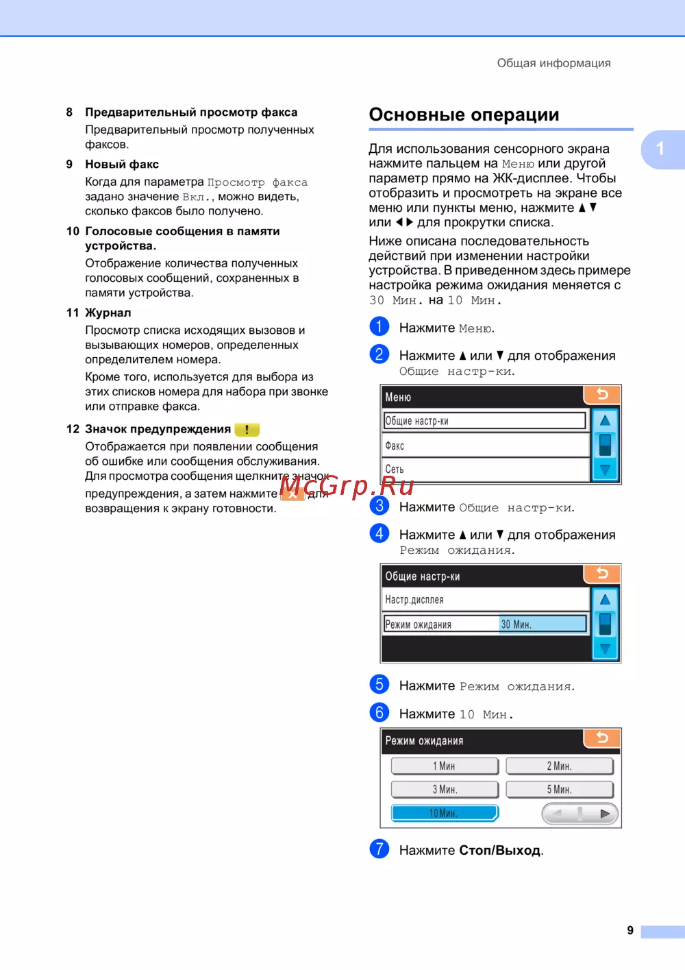 Узнайте о возможностях устройства: просмотр факсов, управление голосовыми сообщениями и настройка режима ожидания. Простые шаги для эффективного использования.