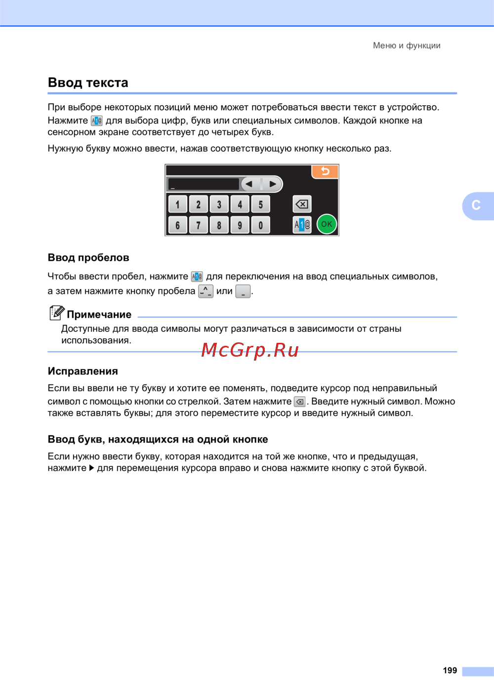 Brother MFC-990CW — инструкции по вводу текста и исправлениям на устройстве [211/241]