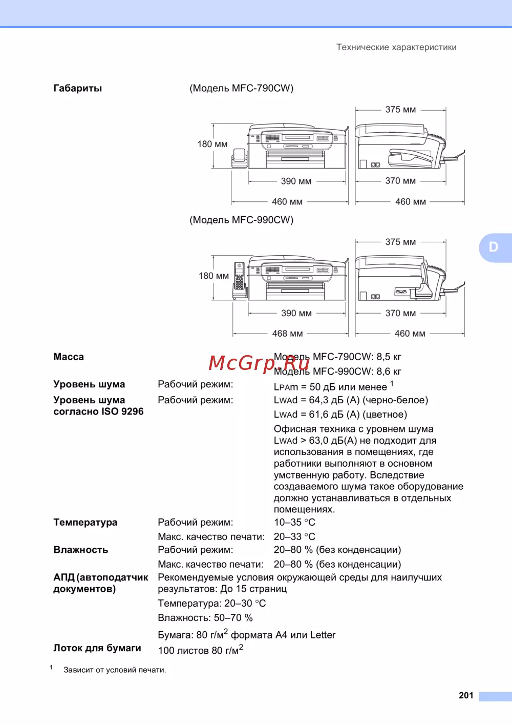 Brother MFC-990CW — технические характеристики офисной печатной техники [213/241]