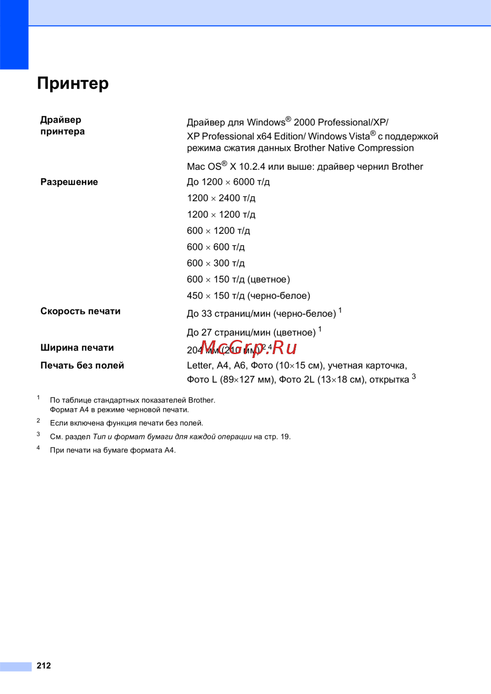 Brother MFC-990CW — принтеры с высоким разрешением и скоростью печати до 33 стр./мин для черно-белых документов формата A4 [224/241]
