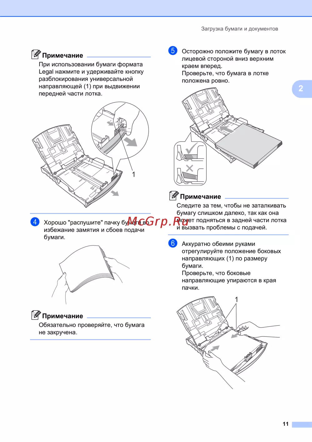 Brother MFC-990CW — как правильно загружать бумагу в лоток для печати [23/241]
