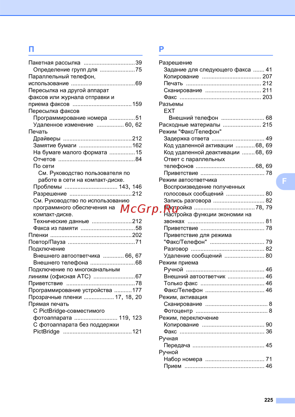 Brother MFC-990CW — полное руководство по настройке и использованию факсов и автоответчиков [237/241]