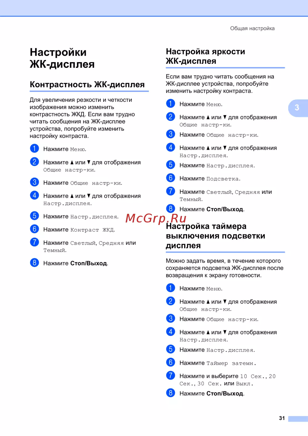 Brother MFC-990CW [43/241] Настройки жк дисплея