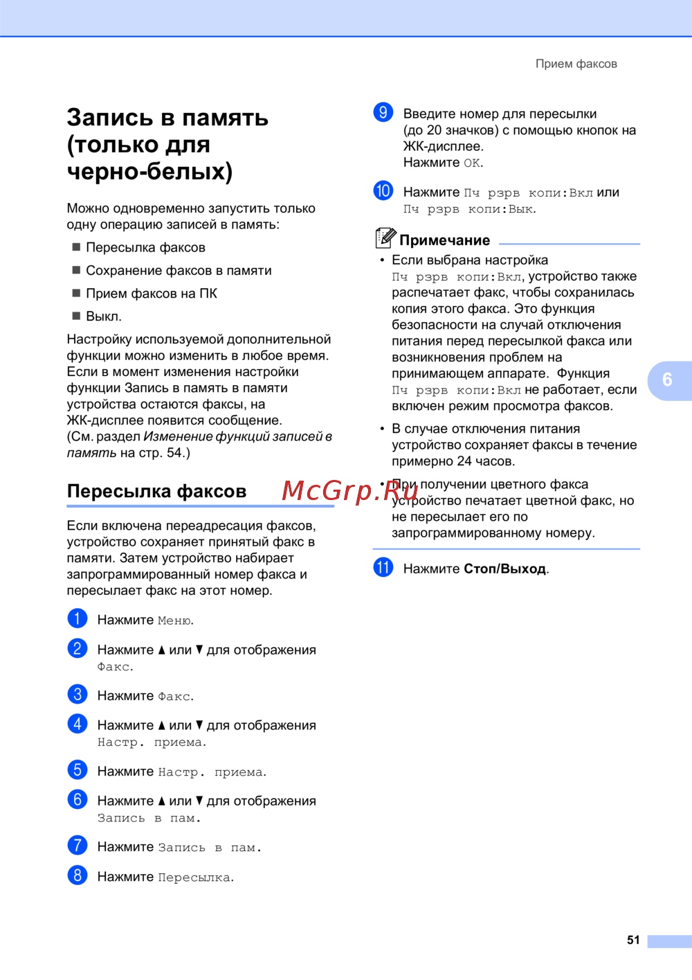 Brother MFC-990CW — инструкция по приему и пересылке факсов с функцией памяти [63/241]