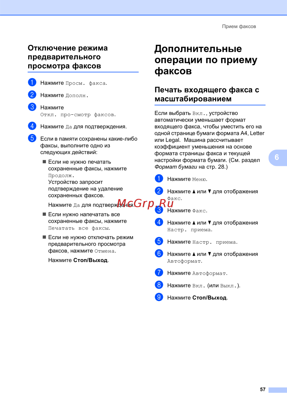 Brother MFC-990CW — инструкция по отключению предварительного просмотра факсов [69/241]