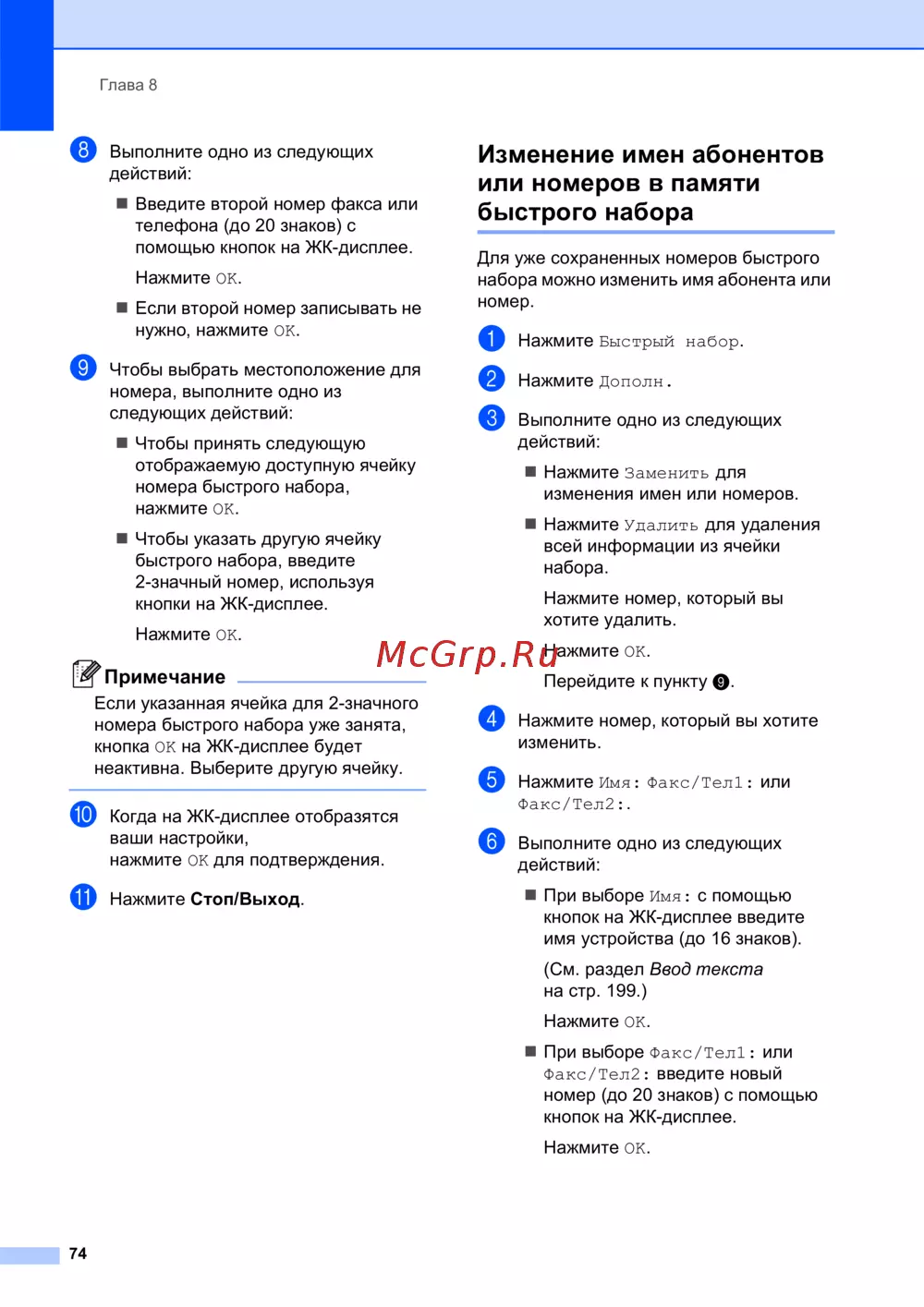 Brother MFC-990CW — инструкция по настройке быстрого набора на устройстве [86/241]