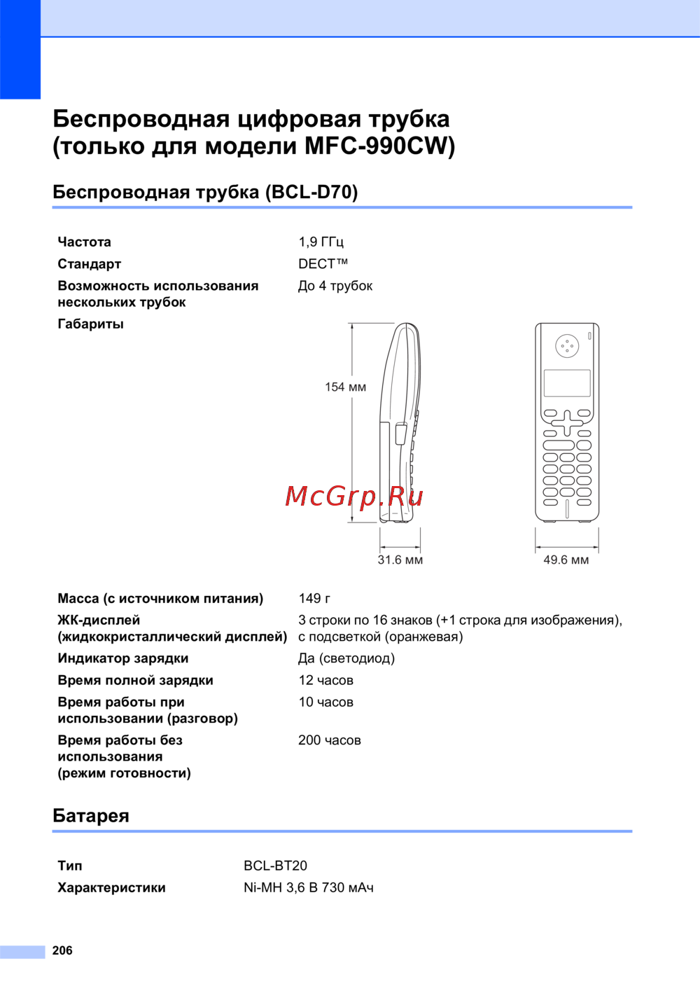- Беспроводная цифровая трубка только для модели mfc 990cw p.218