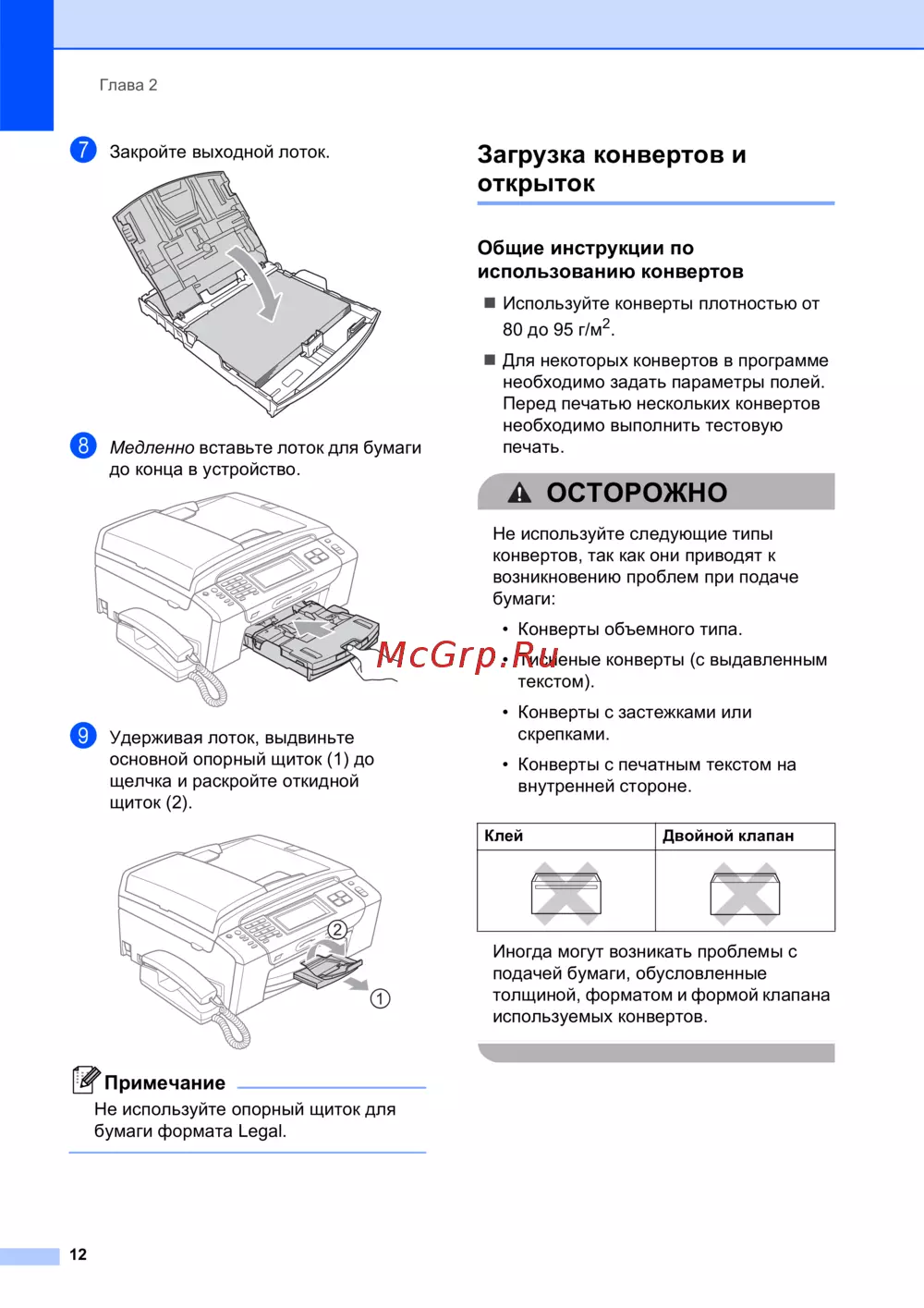 Brother MFC-790CW — инструкции по загрузке бумаги и конвертов в устройство [24/241]