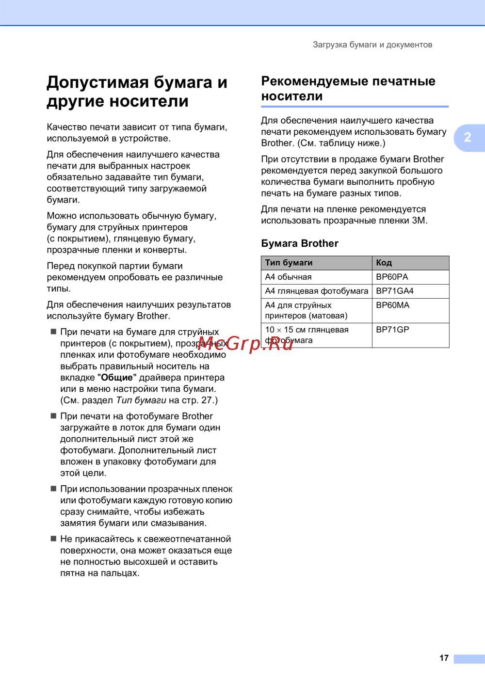 ![Brother MFC-790CW [29/241] Рекомендуемые печатные носители](/views2/1025877/page29/bg1d.png)
