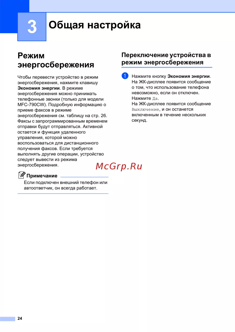 Brother MFC-790CW — как перевести устройство в режим энергосбережения [36/241]