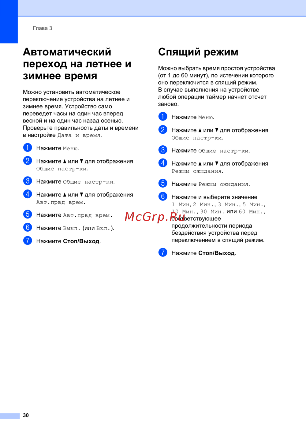 Brother MFC-790CW — автоматическое переключение на летнее и зимнее время устройства [42/241]