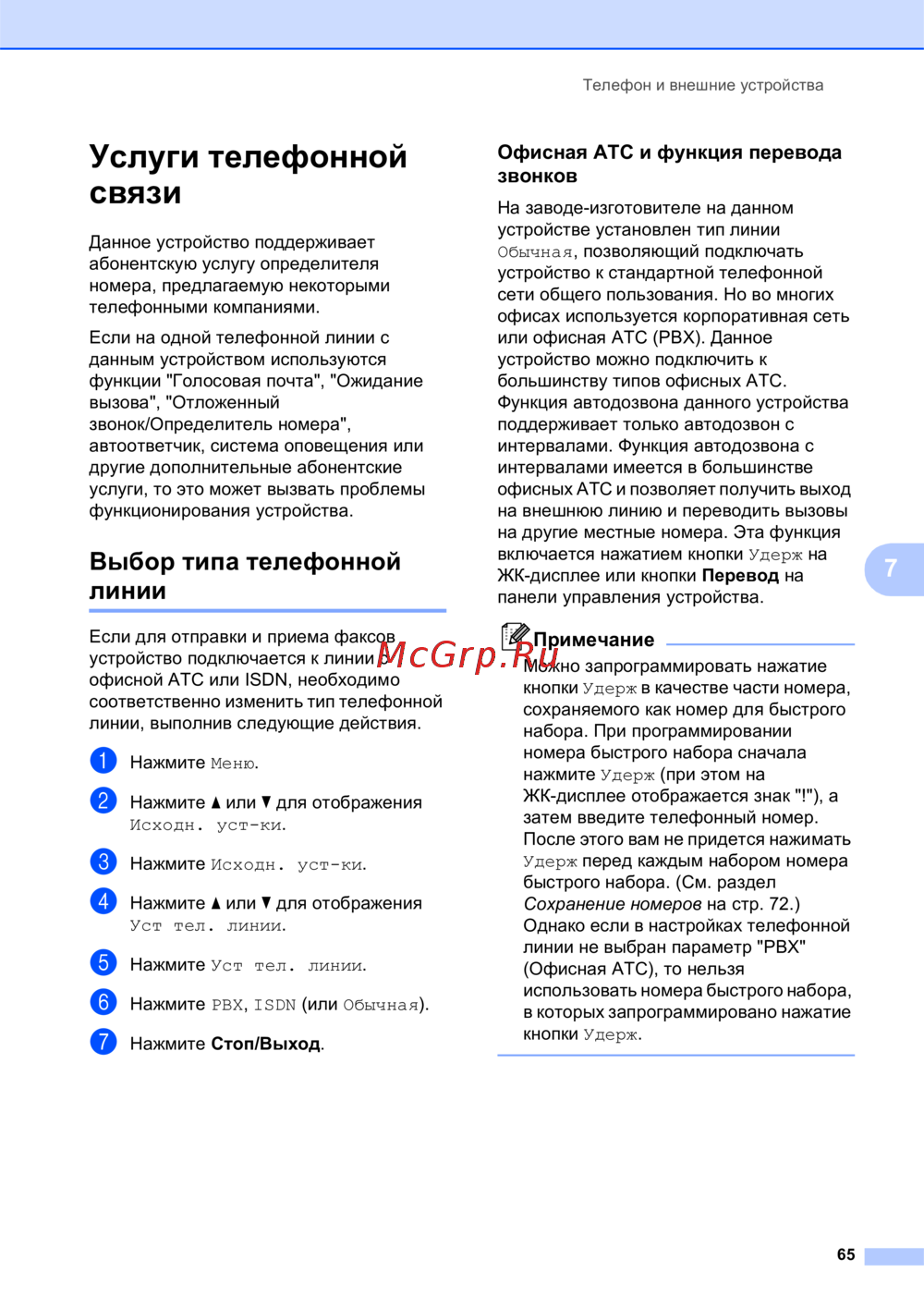 Brother MFC-790CW — настройка телефонного устройства для офисной связи и функций [77/241]
