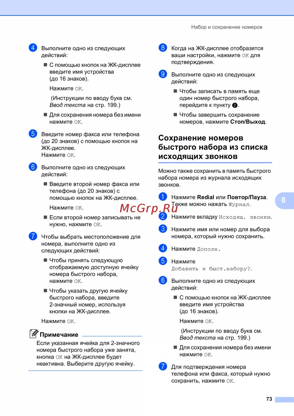Brother MFC-790CW — как сохранить номера быстрого набора на устройстве [85/241]