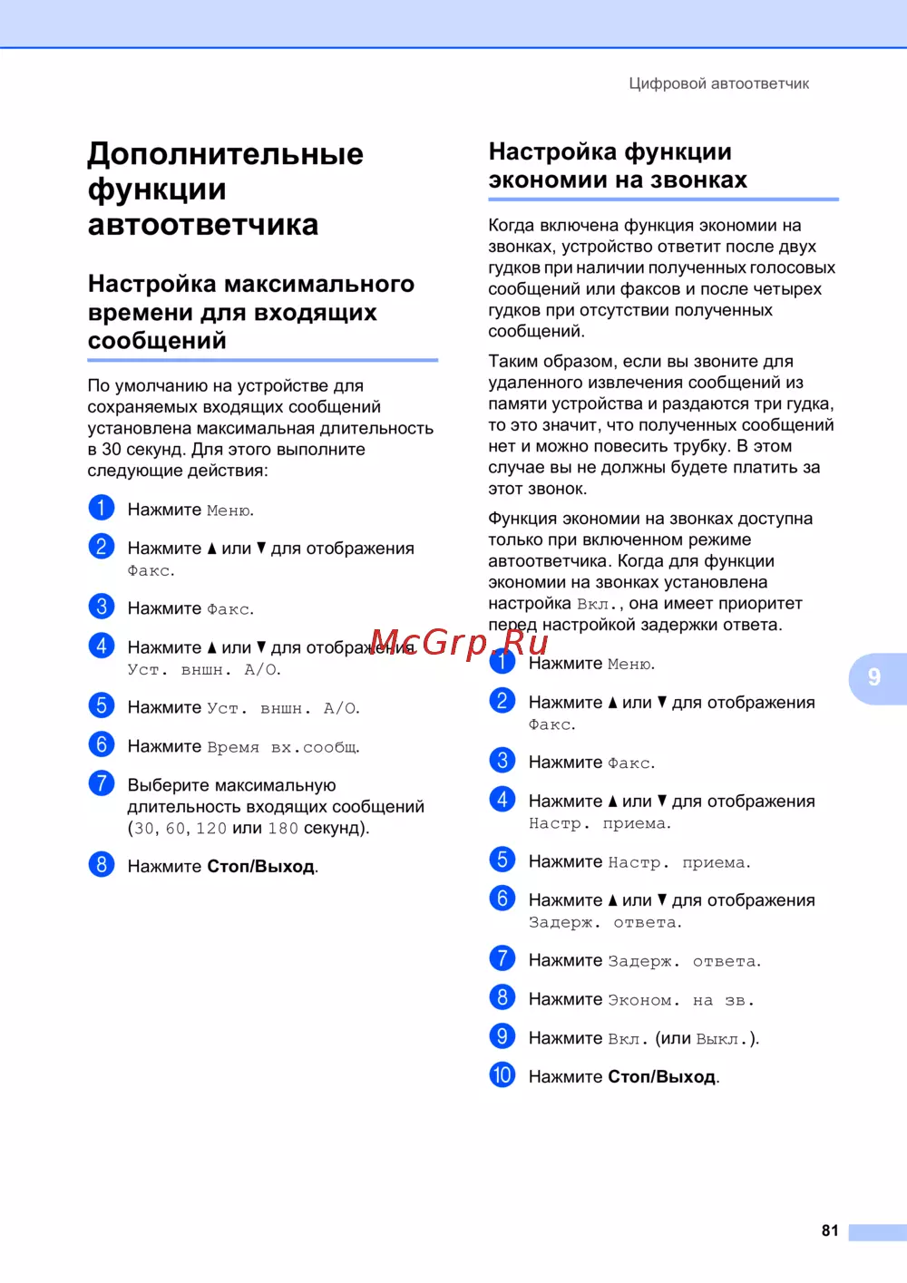 Brother MFC-790CW — настройка функций цифрового автоответчика для оптимизации работы [93/241]
