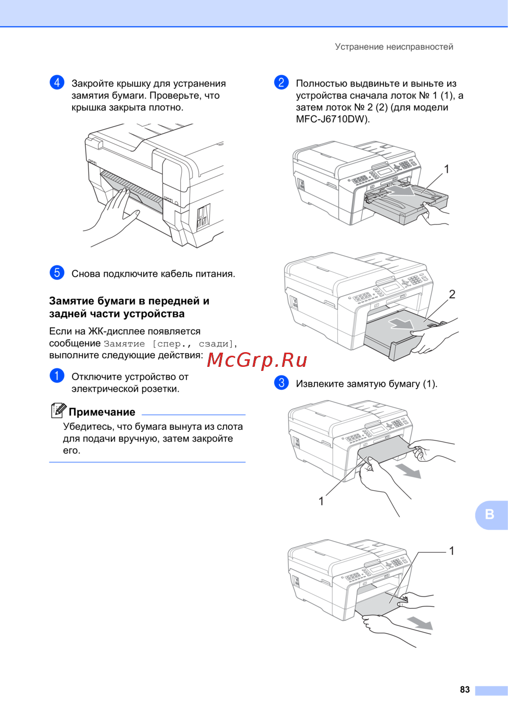 Brother MFC-J6510DW — устранение замятия бумаги в устройстве: пошаговая инструкция [91/153]