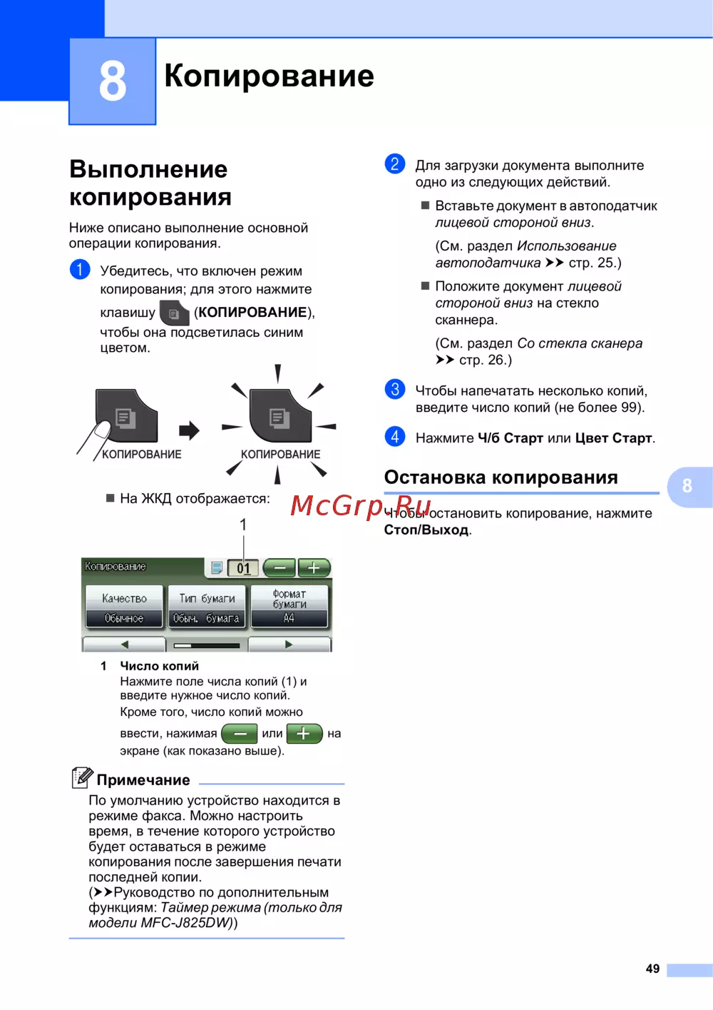 Brother MFC-J825DW — инструкция по выполнению операции копирования документов [57/151]