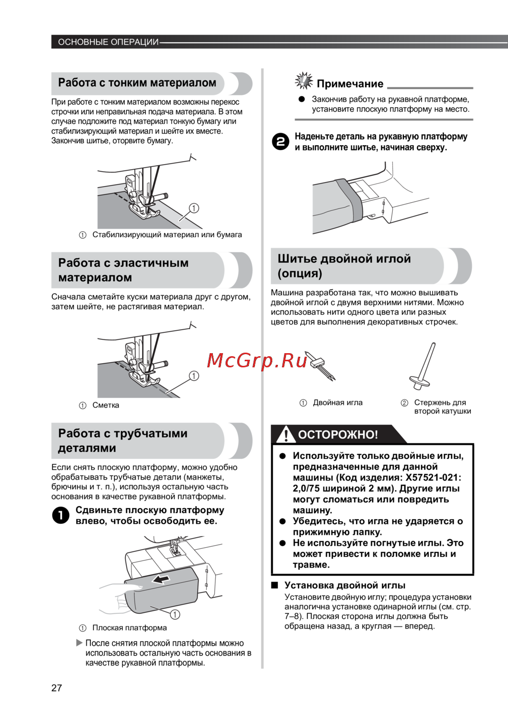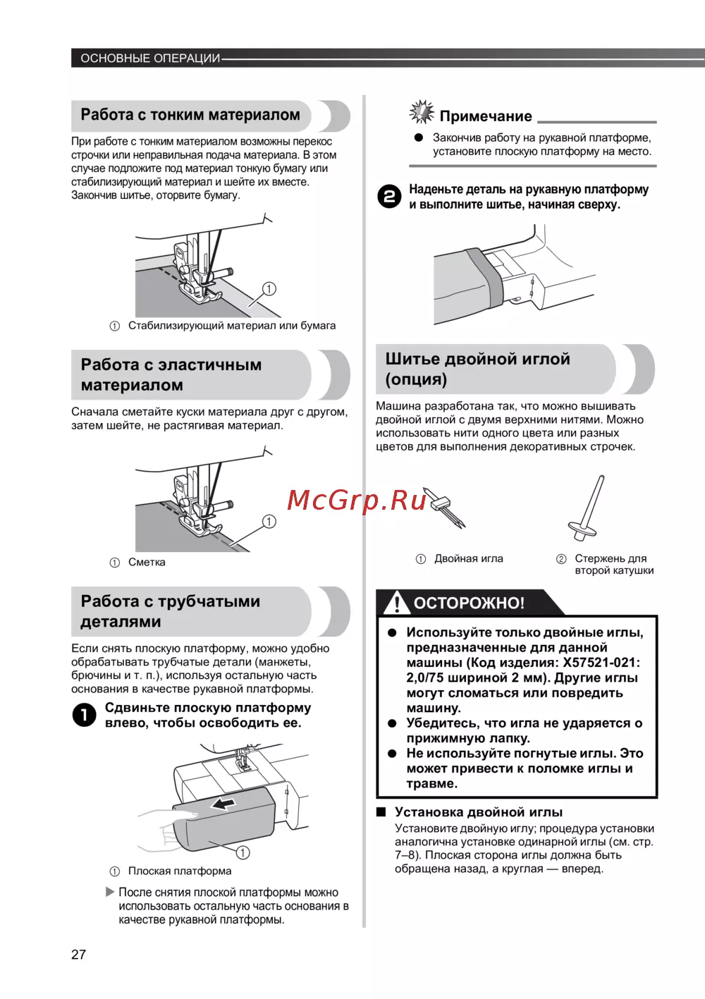 Brother CLASSIC 30 — основные операции шитья: работа с тонкими и эластичными материалами [28/52]