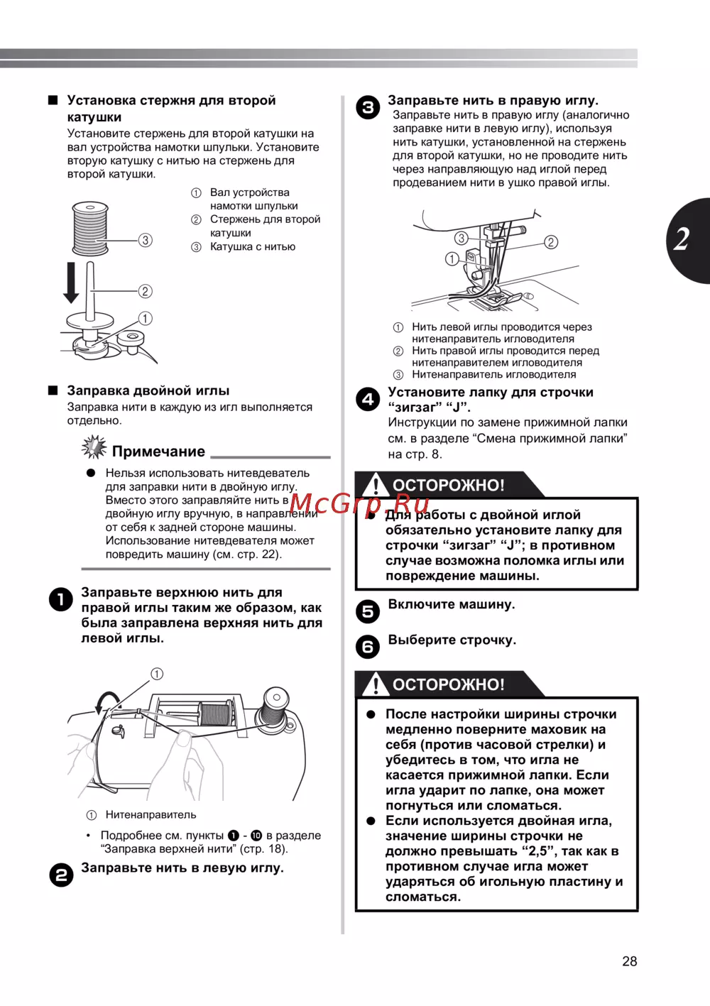 Brother CLASSIC 30 — инструкция по установке и заправке двойной иглы для швейной машины [29/52]