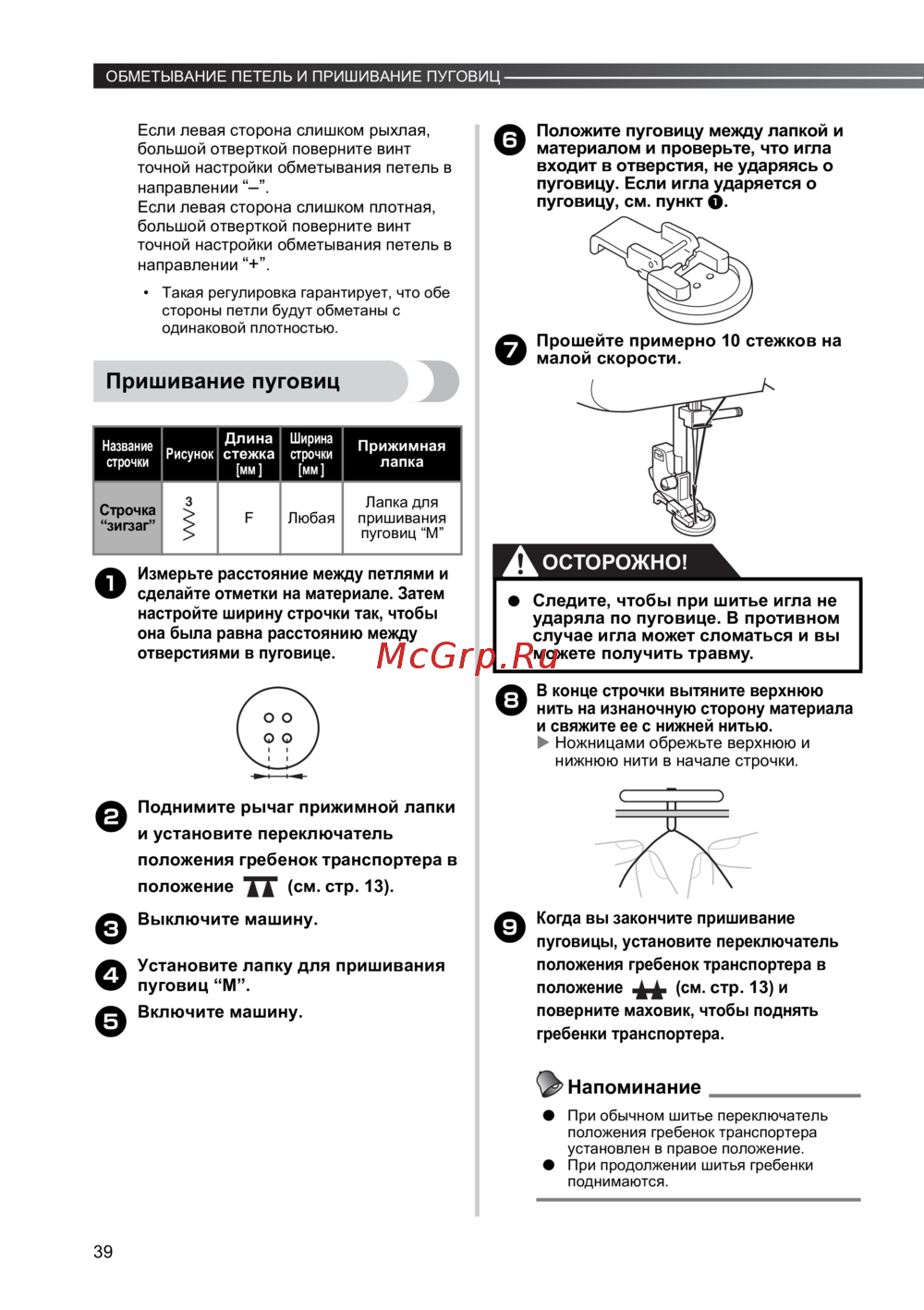 - Когда обметывание петли будет закончено остановите шитье p.38