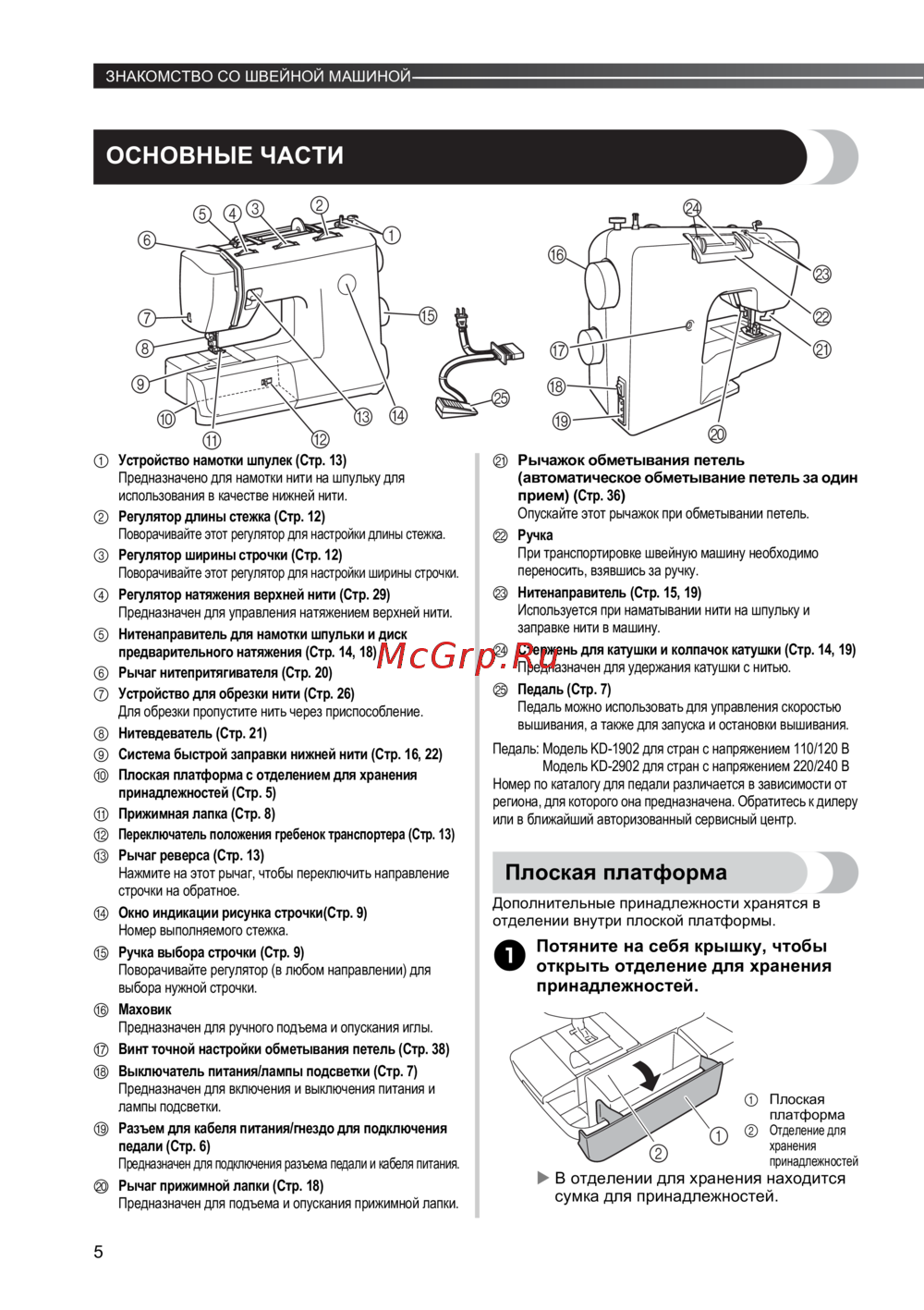 Система быстрой заправки нижней нити (Стр. 16, 22)