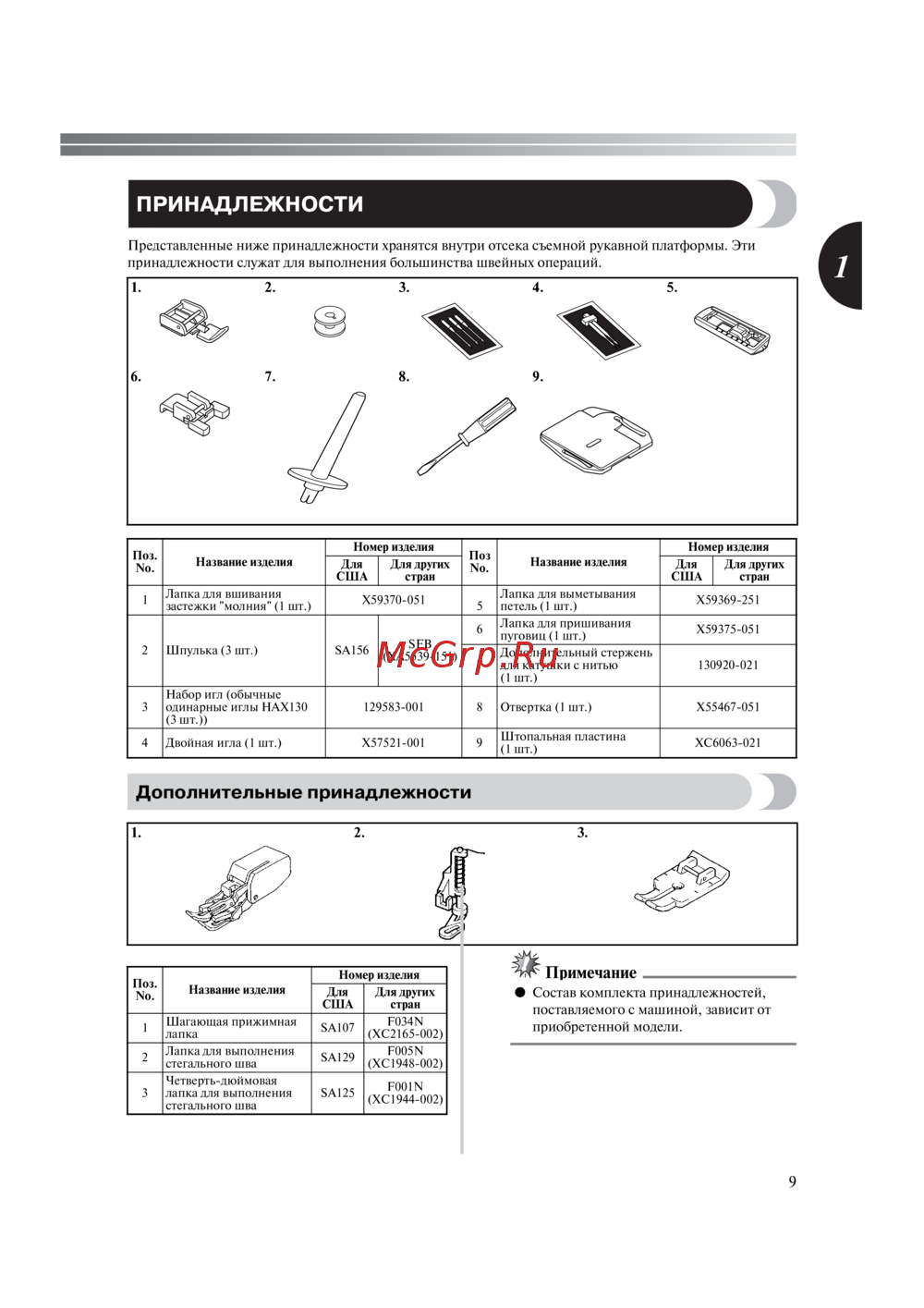 Brother NV A50 (Innov-is)Уведомление о принадлежностях, входящих в комплект поставки -