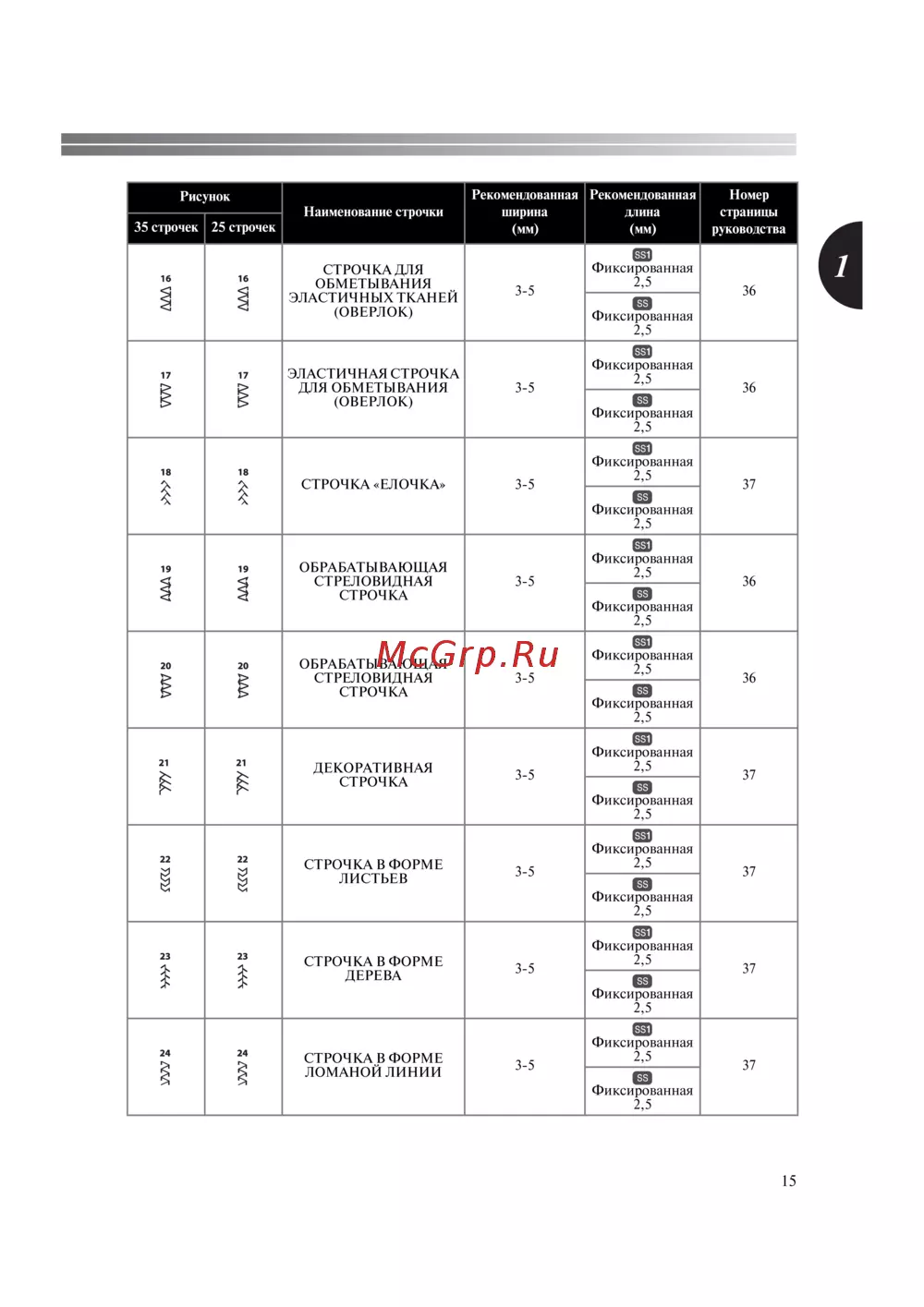 - При использовании двойной иглы убедитесь что установленная ширина стежка не превышает значение 3 поскольку в противном случае это может привести к тому что игла ударит по игольной пластине и сломается p.28