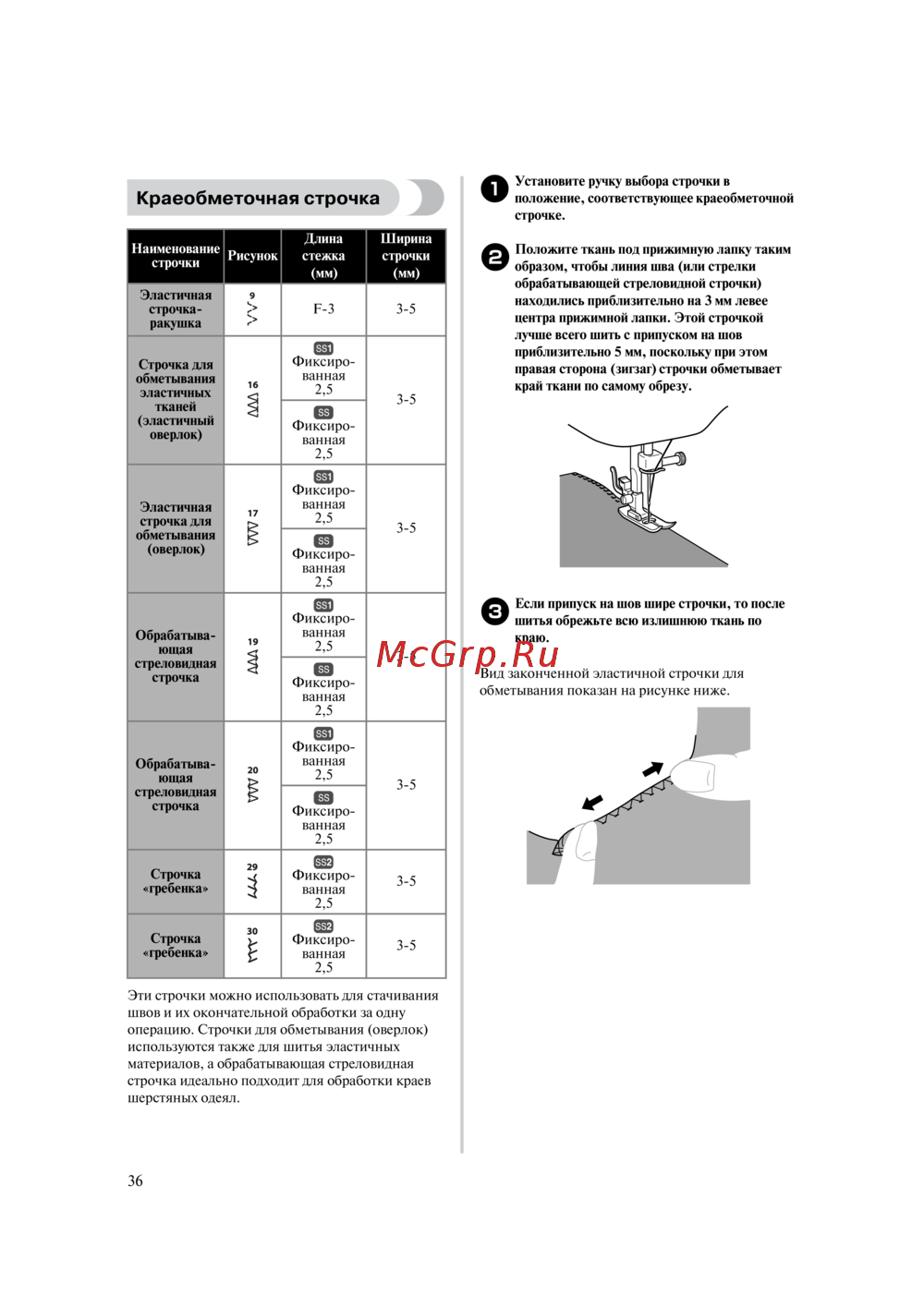 Brother Comfort 25 — краеобметочные строчки для шитья и обработки тканей [37/60]