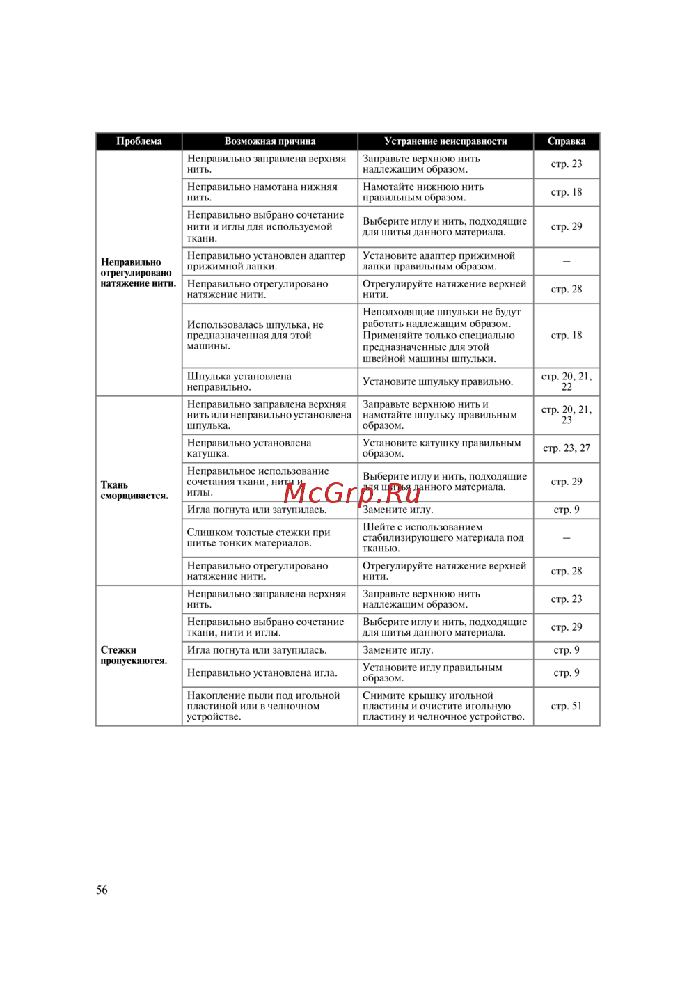 Игла погнута или затупилась. Замените иглу. стр. 9