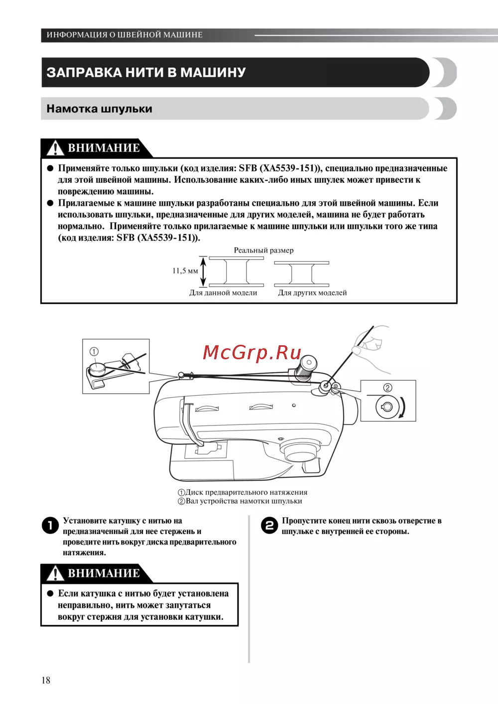 для этой швейной машины. Использование каких;либо иных шпулек может привести к