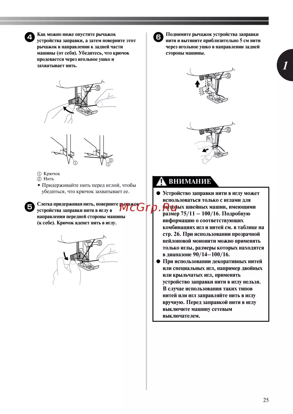 - Применяйте только иглы предназначенные для бытовых швейных машин любые другие иглы при работе могут погнуться или сломаться что может привести к травме p.11
