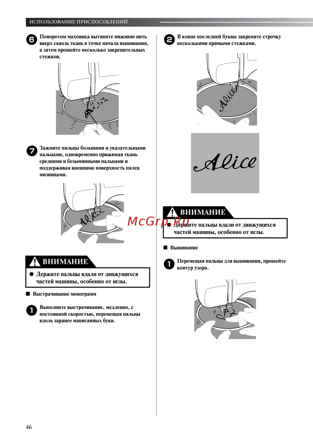 - Держите пальцы вдали от движущихся частей машины особенно от иглы p.49