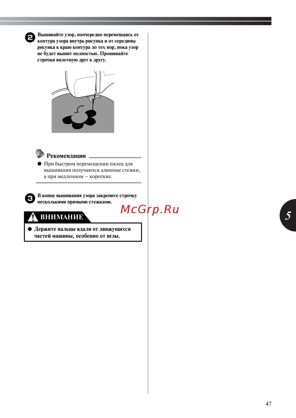 - Держите пальцы вдали от движущихся частей машины особенно от иглы p.49