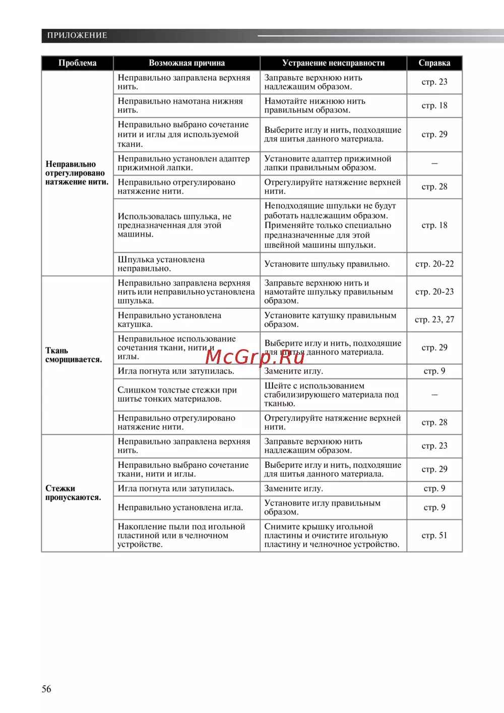 Brother Comfort 25A — устранение неисправностей швейной машины: советы и рекомендации [58/61]