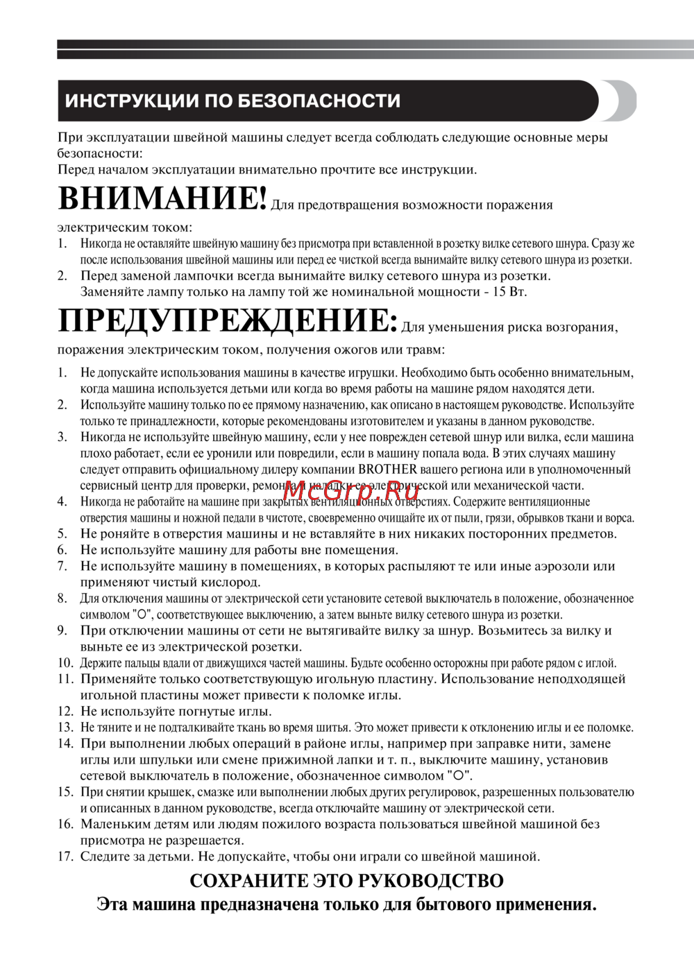 - Сохраните это руководство эта машина предназначена только для бытового применения p.2