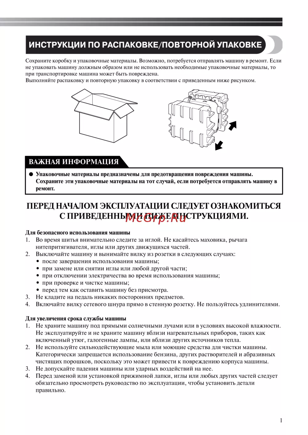 - Инструкции по распаковке повторной упаковке p.3