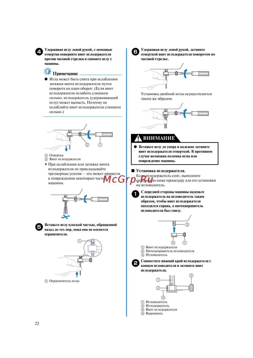 ■ Установка иглодержателя.