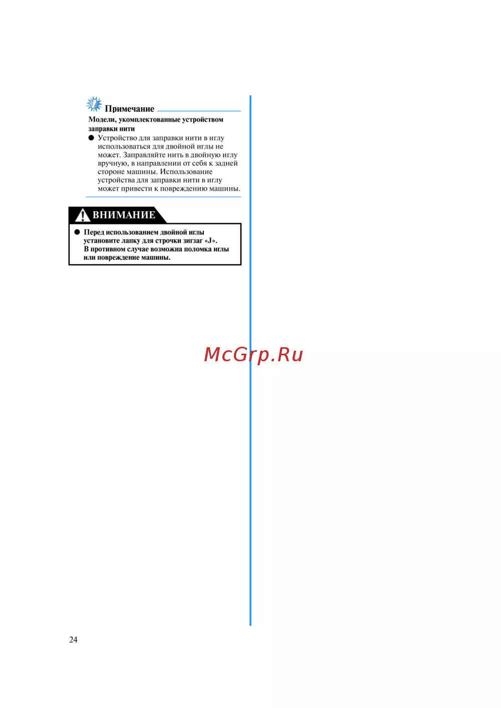 - Для моделей укомплектованных системой быстрой заправки нижней нити p.17