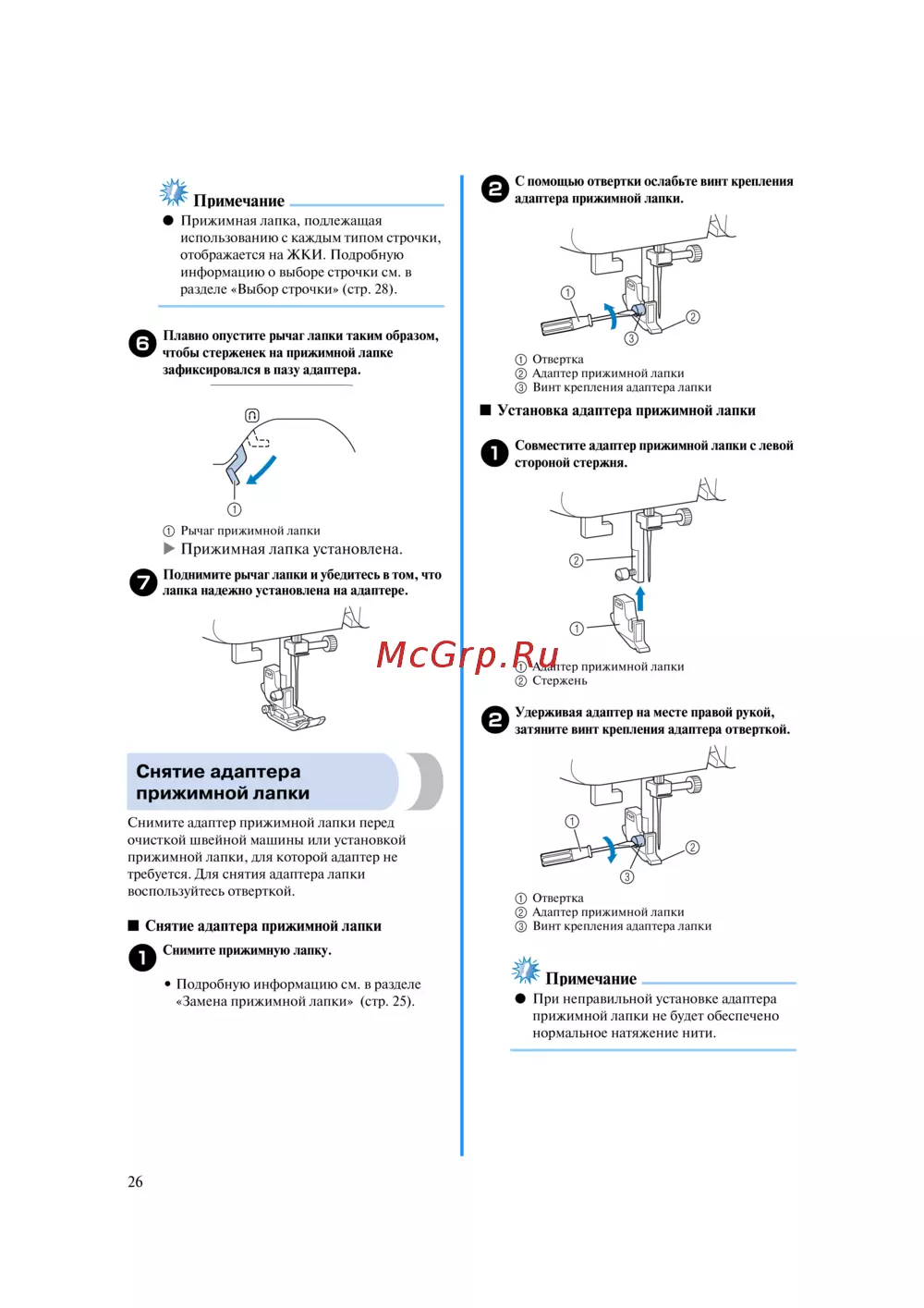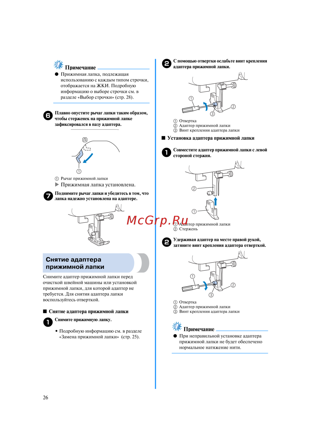 Полная инструкция по правильной установке и снятию адаптера прижимной лапки, выбору строчки и ремонту швейной машины своими руками.