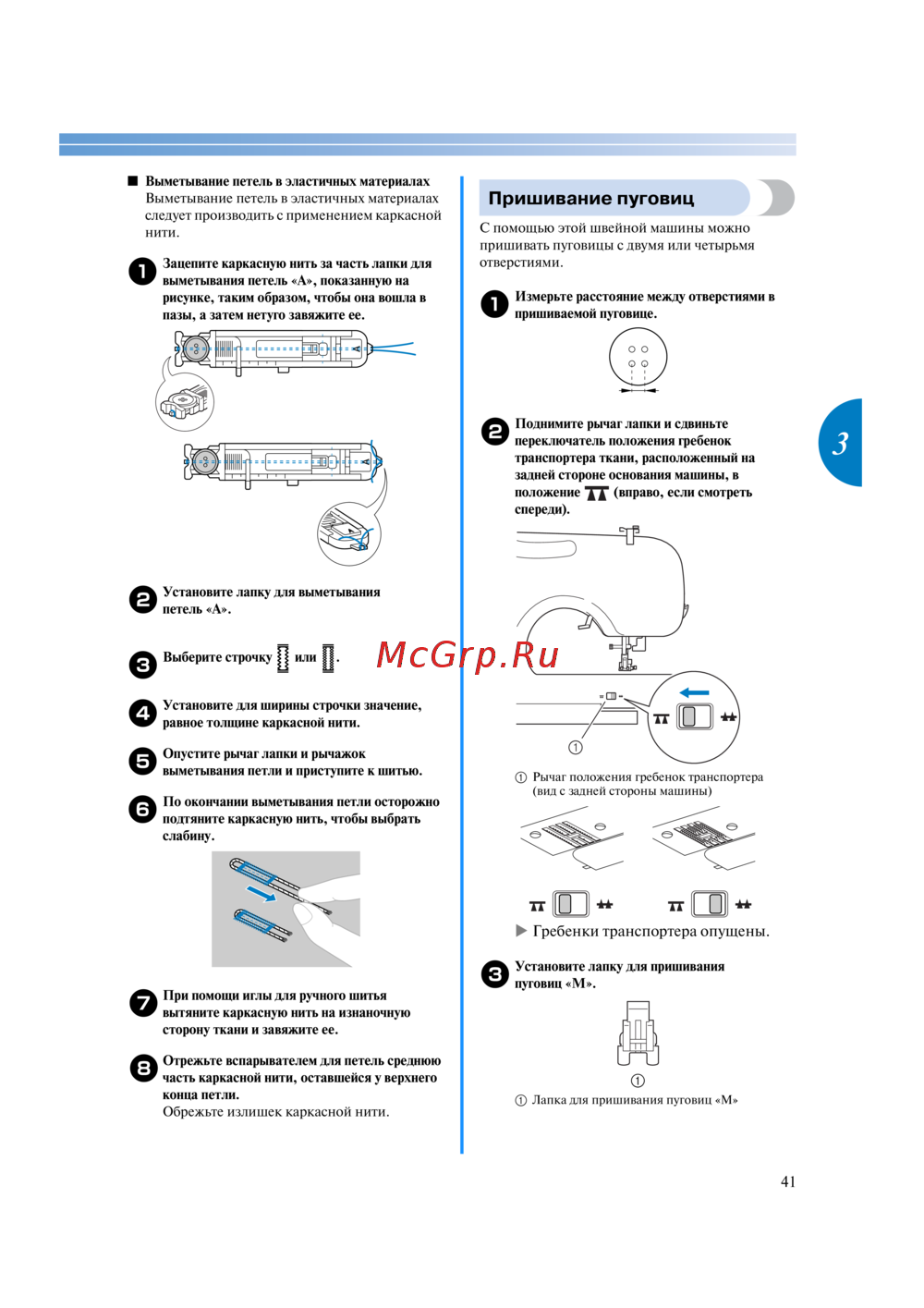 - С помощью этой машины можно выметывать петли и пришивать пуговицы p.41