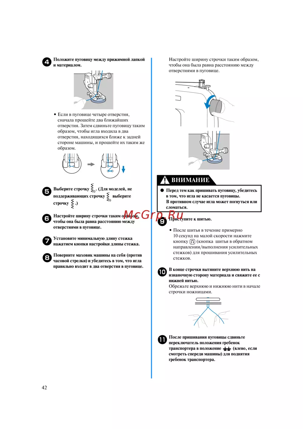 - Усил усилительные стежки не использовать шитье в обратном направлении p.49