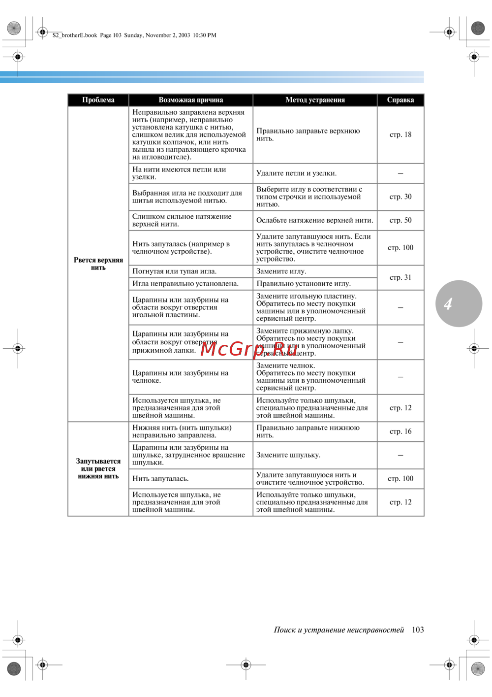 Brother CS-8060 — поиск и устранение неисправностей швейной машины [109/116]