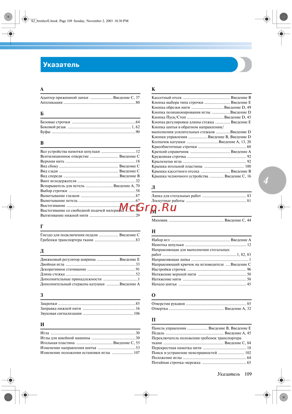 Игольная пластина ..................................Введение C, 55
