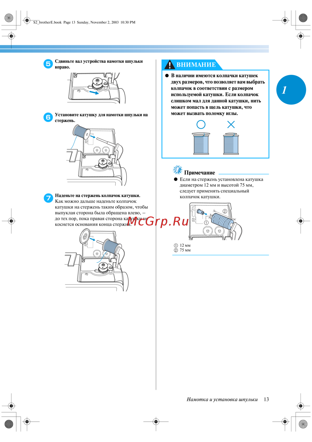 Brother CS-8060 — как правильно намотать и установить шпульку на устройство [19/116]
