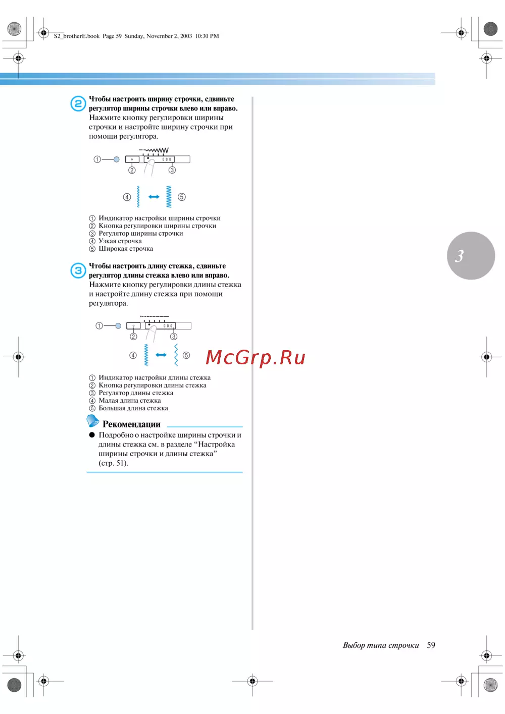 - Настройка ширины строчки и длины стежка 51 p.9