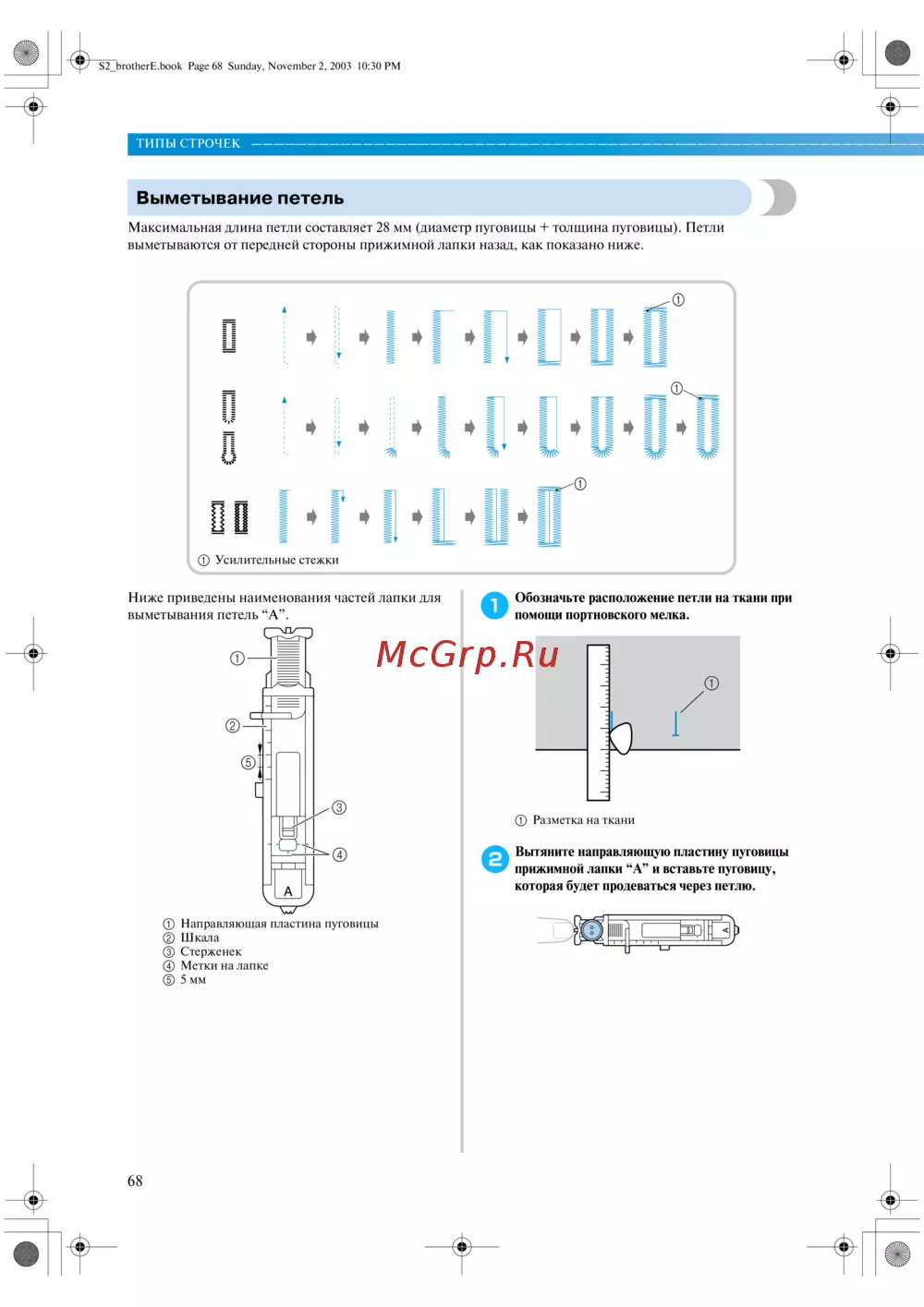 Узнайте о выметывании петель, максимальной длине и правильной разметке на ткани. Подробное руководство по использованию прижимной лапки для создания идеальных петель.