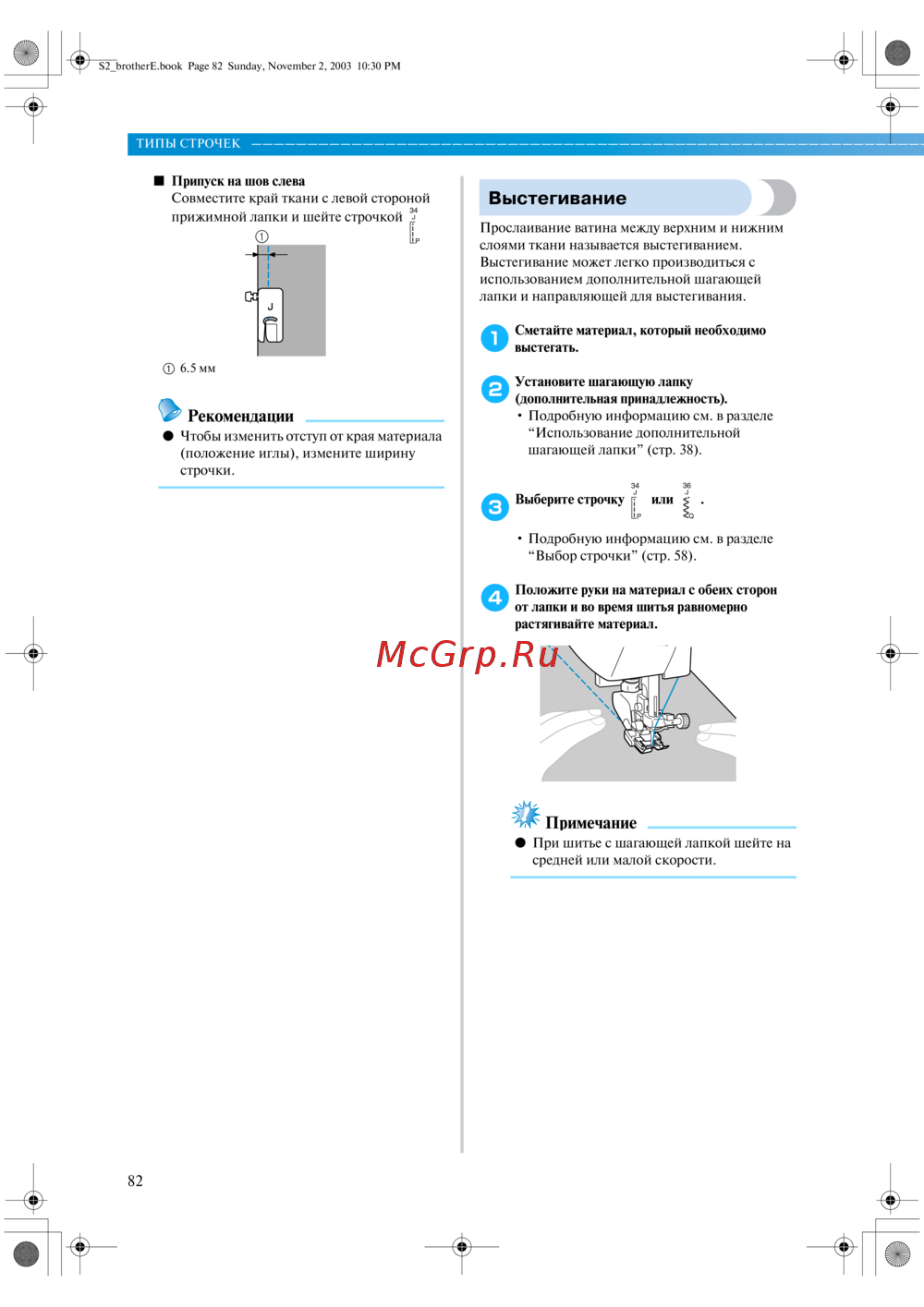 Brother CS-8060 — типы строчек и советы по выстегиванию ткани [88/116]