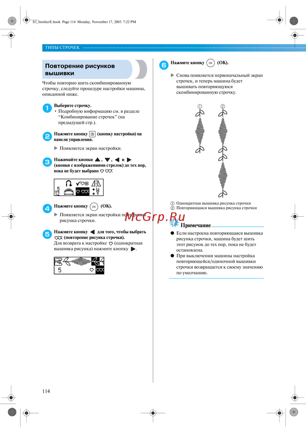 Brother CS-8120 — как настроить повторение рисунков вышивки на швейной машине [120/144]