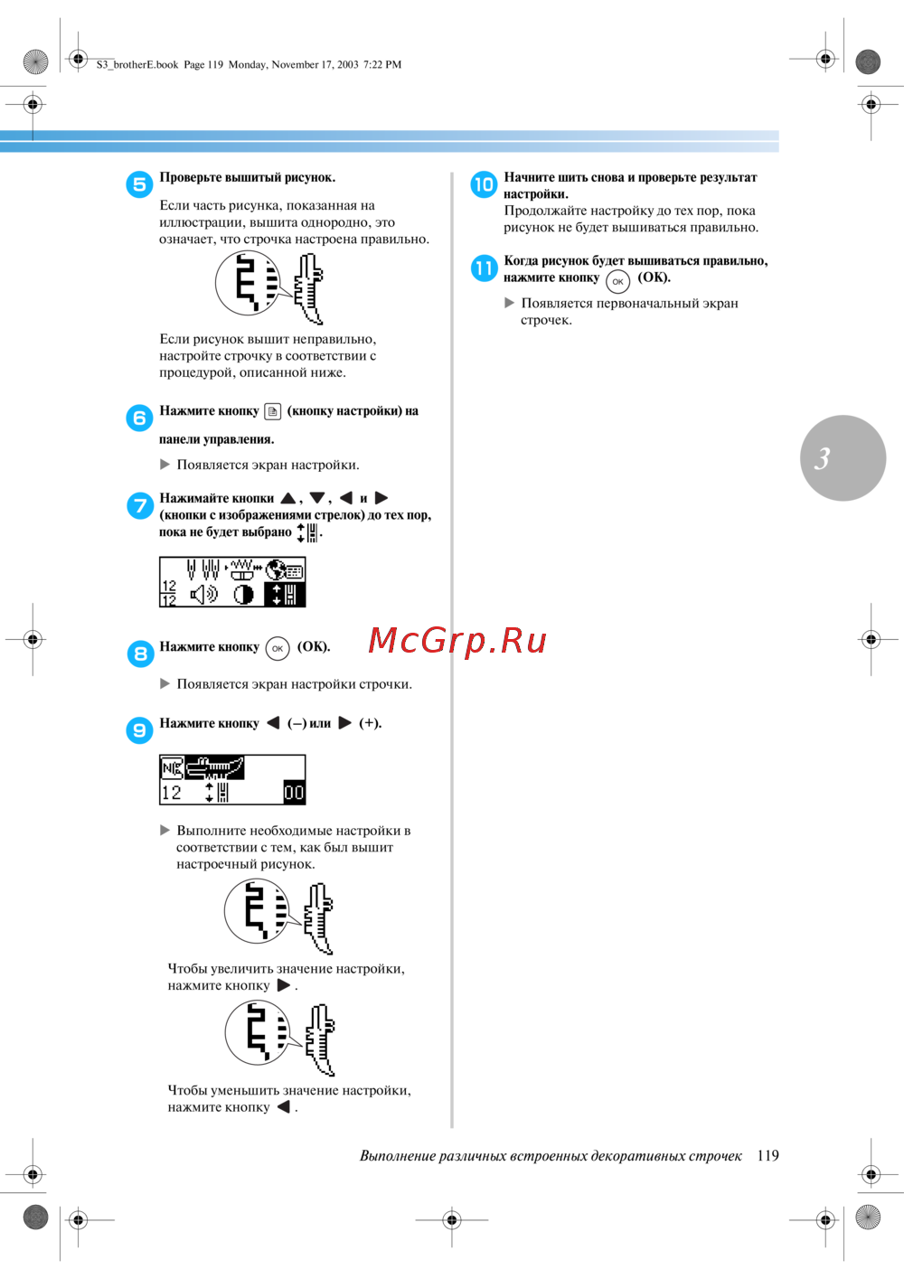 Brother CS-8120 — настройка декоративных строчек для вышивания: пошаговое руководство [125/144]