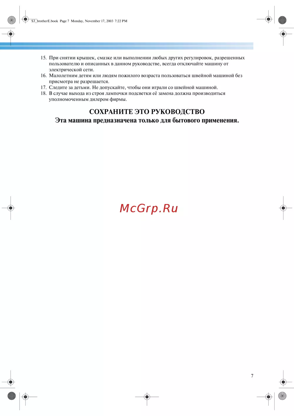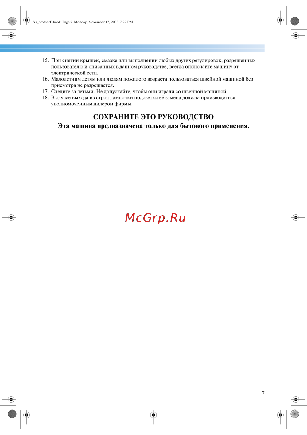 - Сохраните это руководство эта машина предназначена только для бытового применения p.13
