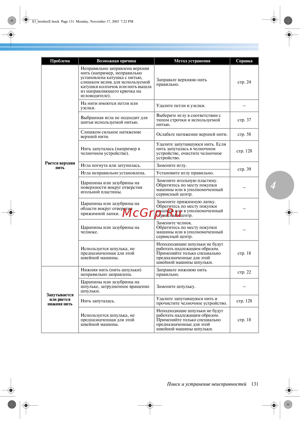 Brother CS-8120 — поиск и устранение неисправностей швейных машин: советы и рекомендации [137/144]